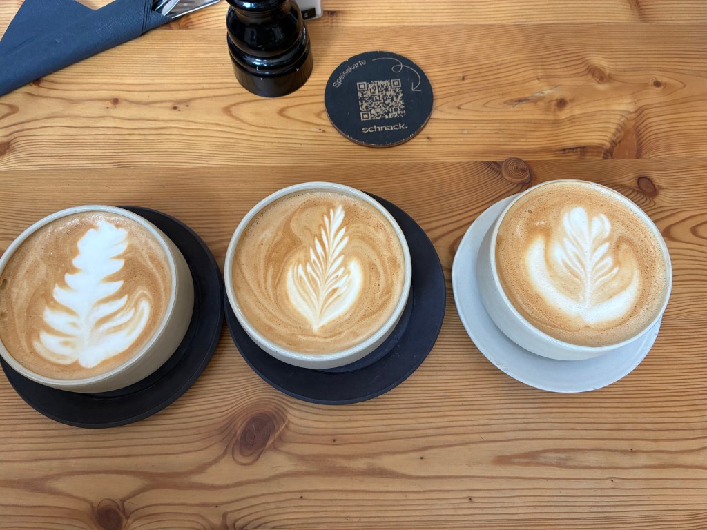 Exzellentes Frühstück im Café Schnack – allein die Pflanzenmuster sind schon den Besuch wert.