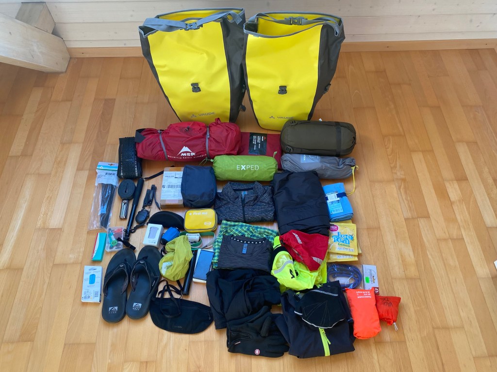 Das Material ist mehr oder weniger vollständig, ca. 12 Kg tutti quanti. Sollte machbar sein, da ich ja genug Zeit für die Reise frei habe.